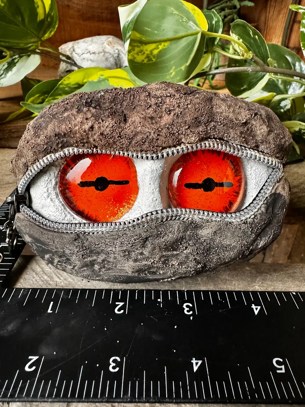 All concrete items are handmade and one of a kind. Every eye is hand painted on glass. These can be placed anywhere that's fun. On the bookshelf. Outside in the garden. They will hold up in the weather since they are made of concrete. The eyes will glow when charged in the sunlight or under bright light. Some eyes glow brighter than others.
